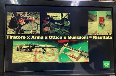 Come accennato, l’esposizione si è basata sui fondamentali, ovvero sul tiratore, sull’arma, sull’ottica e sul munizionamento.